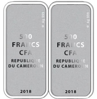 На аверсе монет представлены надписи: «500 FRANCS CFA» - номинал, «REPUBLIQUE DU CAMEROON» - страна-эмитент, «2018» - год выпуска и «Ag 999» - чистота серебра.