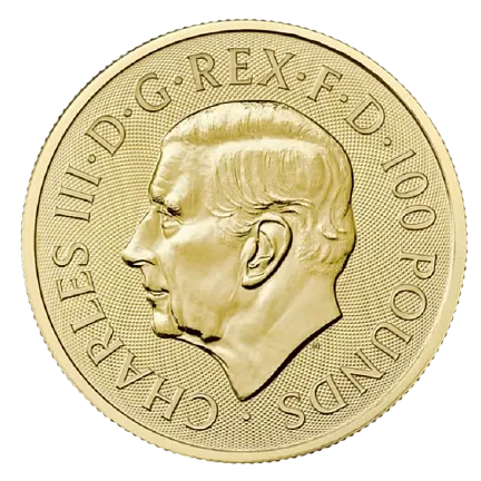 На лицевой стороне монеты изображен монарх Чарльз Третий с номиналом 100 фунтов. Каждая монета имеет специальный фон с мельчайшими точками для обеспечения безопасности.