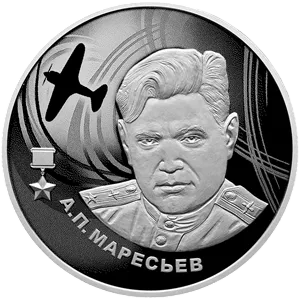 Монета «А.П. Маресьев», СПМД, 2026 г., Серебро, 15,55 гр., проба 925, РОССИЯ