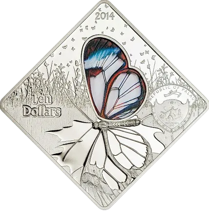 Монета «Стеклянная бабочка», 2014 г., Серебро, 50 гр., проба 925, ПАЛАУ